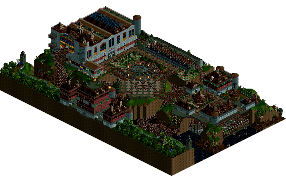 Take a ride on the Sacrifice & offer up your soul to the ruler of the land.If you try to escape you'll either meet your fate with the bubbling tar pits or the monsters inside the labryinth. To see the full detail of the labryinth please use cut away view set height to 0.00. My entry has two dark ride areas, One is the labyrinth under the island & the 2nd is nearby the church of sacrifices.