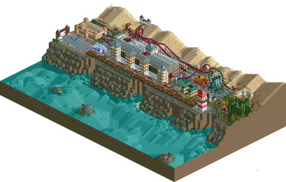 Between the dunes and the cliffs lies the Grand Coast-er Hotel. When the owner of the prestigious Grand Hotel saw visitor numbers decline, he made a radical decision — inspired by the popularity of the nearby fairground — to attract new guests: building an inverted roller coaster straight through the hotel. The fact that the ride ruined the hotel’s famous Japanese garden was something he accepted as part of the deal. Many of the village’s residents, however, consider the roller coaster an eyesore.